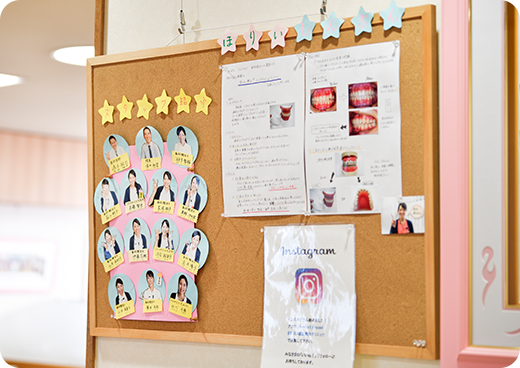 ほりい矯正歯科クリニックは歯科衛生士が主役になれる職場です。ひと言に矯正歯科医院といっても歯科衛生士の仕事は医院によって異なります。当院では歯科衛生士の主な仕事は、歯面研磨や前処理、TBIや矯正装置の説明です。患者さまと積極的にコミュニケーションを取りながら、スムーズな治療が行えるように、サポートする大切な役割を担っています。また、MFT、PMTCや歯のホワイトニングでは専用の個室を設けており、歯科衛生士が主役になって行っているんです!